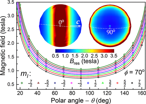 Molecular lanthanide (Ln) complexes are promising candidates for the development of next-generation quantum technologies. High-symmetry structures incorporating integer spin Ln ions can give rise to well-isolated crystal field quasi-doublet ground states, i.e., quantum two-level systems that may serve as the basis for magnetic qubits. Recent work has shown that symmetry lowering of the coordination environment around the Ln ion can produce an avoided crossing or clock transition within the ground doublet, leading to significantly enhanced coherence. Here, we employ single-crystal high-frequency electron paramagnetic resonance spectroscopy and high-level ab initio calculations to carry out a detailed investigation of the nine-coordinate complexes, [HoIIIL1L2], where L1 = 1,4,7,10-tetrakis(2-pyridylmethyl)-1,4,7,10-tetraaza-cyclododecane and L2 = F– (1) or [MeCN]0 (2). The pseudo-4-fold symmetry imposed by the neutral organic ligand scaffold (L1) and the apical anionic fluoride ion generates a strong axial anisotropy with an mJ = ±8 ground-state quasi-doublet in 1, where mJ denotes the projection of the J = 8 spin–orbital moment onto the ∼C4 axis. Meanwhile, off-diagonal crystal field interactions give rise to a giant 116.4 ± 1.0 GHz clock transition within this doublet. We then demonstrate targeted crystal field engineering of the clock transition by replacing F– with neutral MeCN (2), resulting in an increase in the clock transition frequency by a factor of 2.2. The experimental results are in broad agreement with quantum chemical calculations. This tunability is highly desirable because decoherence caused by second-order sensitivity to magnetic noise scales inversely with the clock transition frequency.