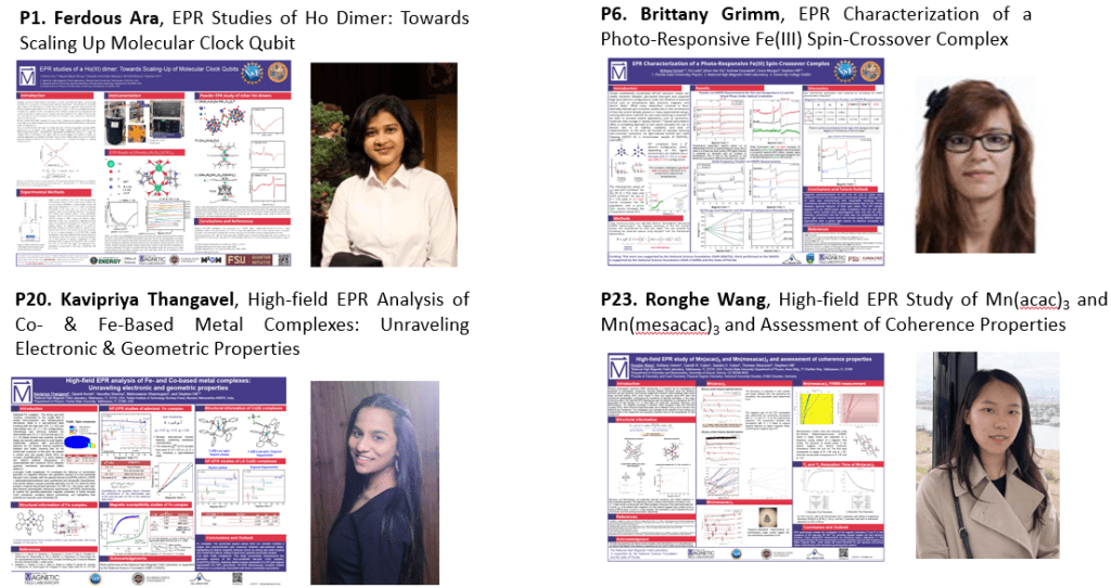 Postdoc Jakub Hruby presented his talk on “High-Field EPR Results in Lanthanides,” while postdocs Sabastian Atwood, Ferdous Ara, Kavipriya Thangavel, and Brittany Grimm showcased their research in the poster session.