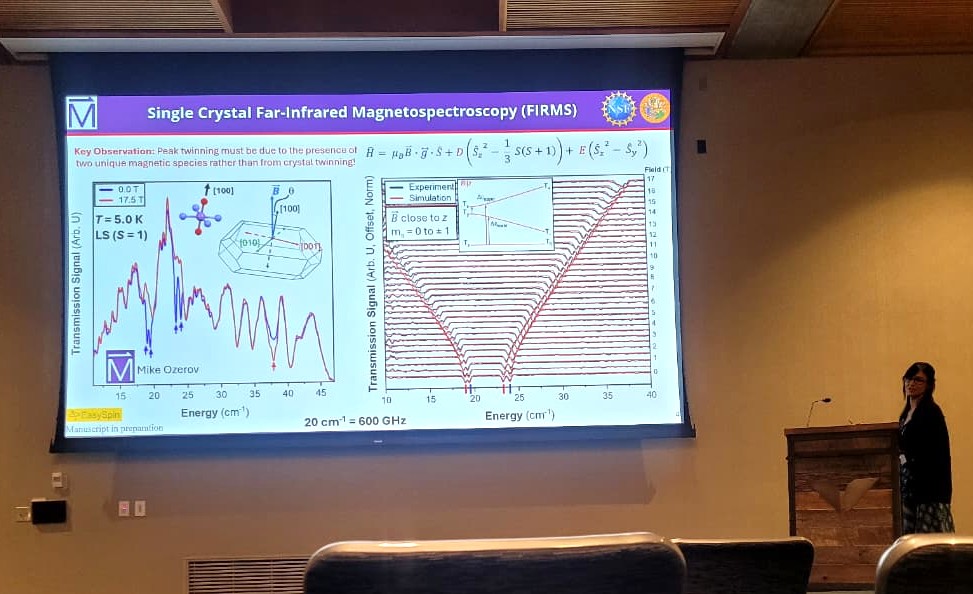 Postdoc Brittany Grimm presented “EPR and FIRMS Characterization of the Magnetic Anisotropy in a Set of Metalorganic MnIII[R-sal2323]+ Spin-Crossover Complexes” at the RMC EPR 2025 conference and, among all the engaging EPR talks, took home the Best Postdoc Oral Presentation award. Congratulations on this fantastic achievement, Brittany!
