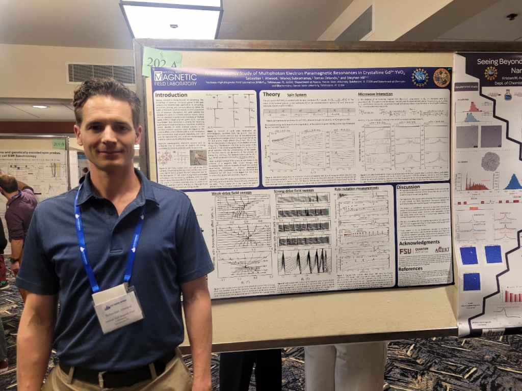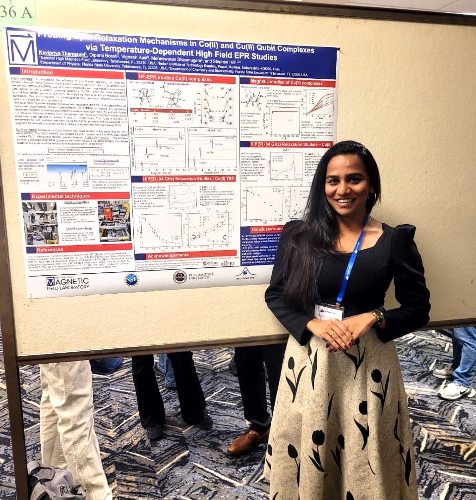 Two more postdocs from Team EMR also took part in the conference. Kavipriya Thangavel presented a poster titled “Probing Spin Relaxation Mechanisms in Co(II) and Cu(II) Qubit Complexes via Temperature-Dependent High-Field EPR Studies”, and Sabastian Atwood presented “Multifrequency Study of Multiphoton Electron Paramagnetic Resonance in Crystalline Gd(III):YVO₂”.