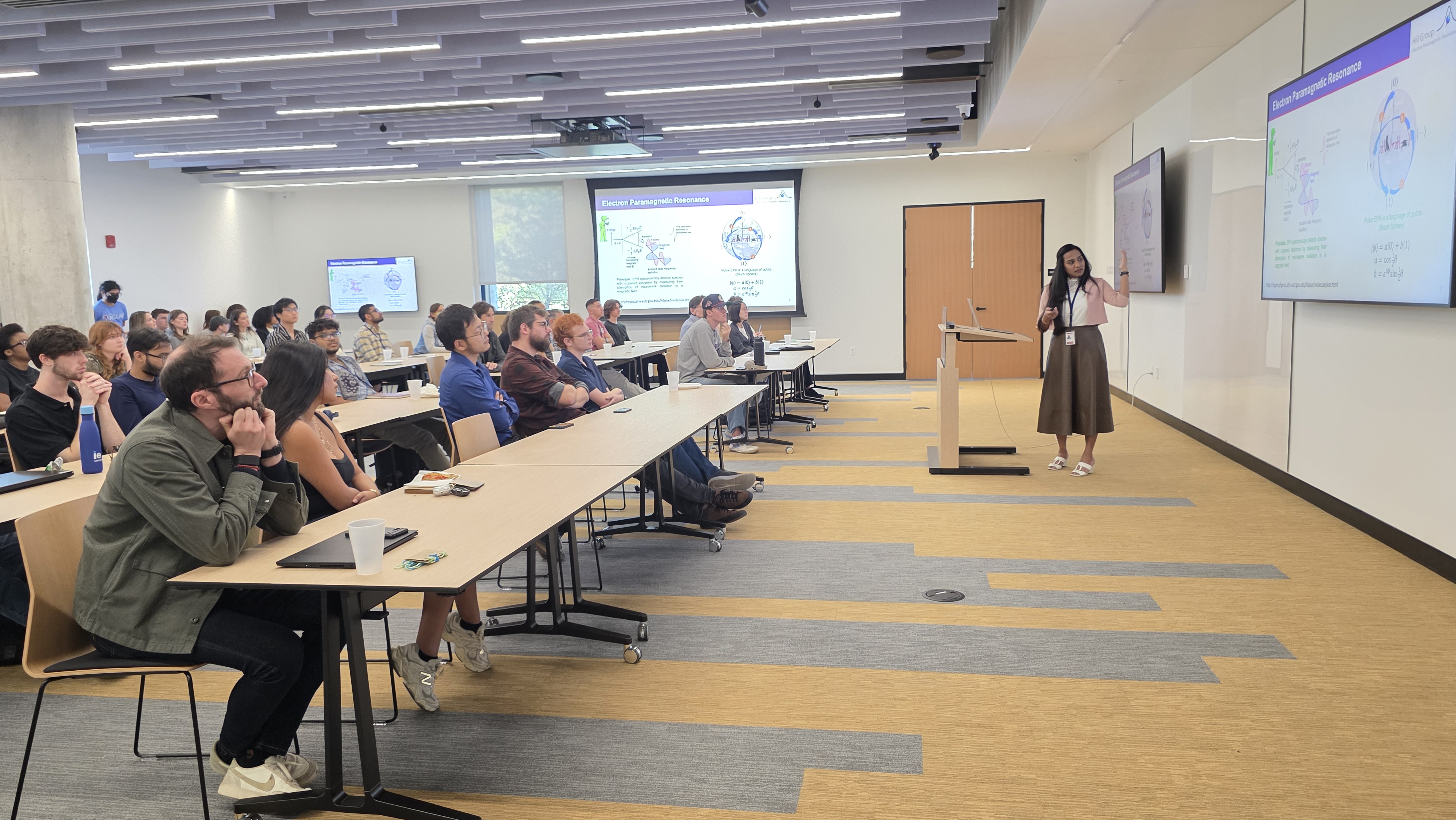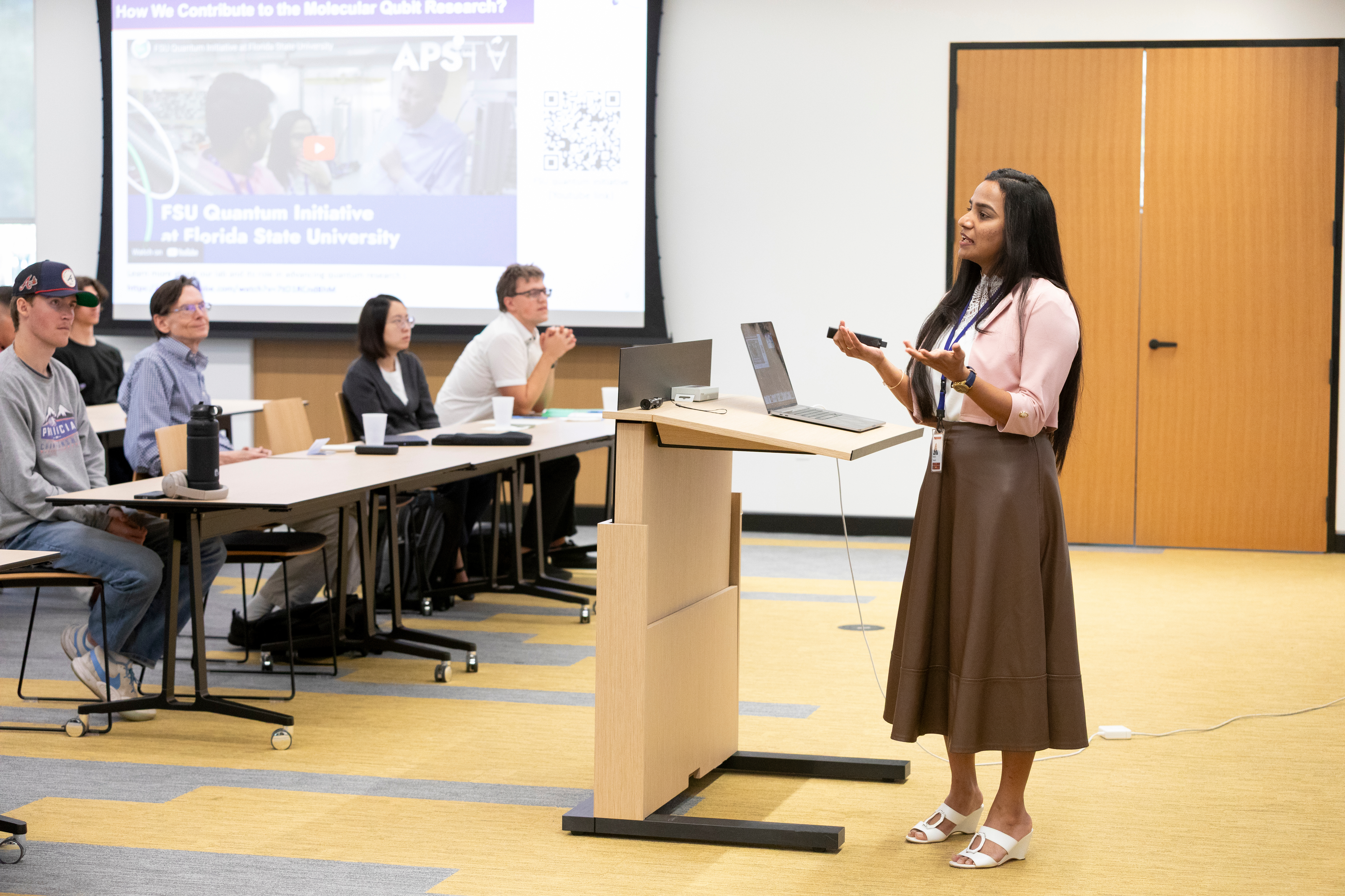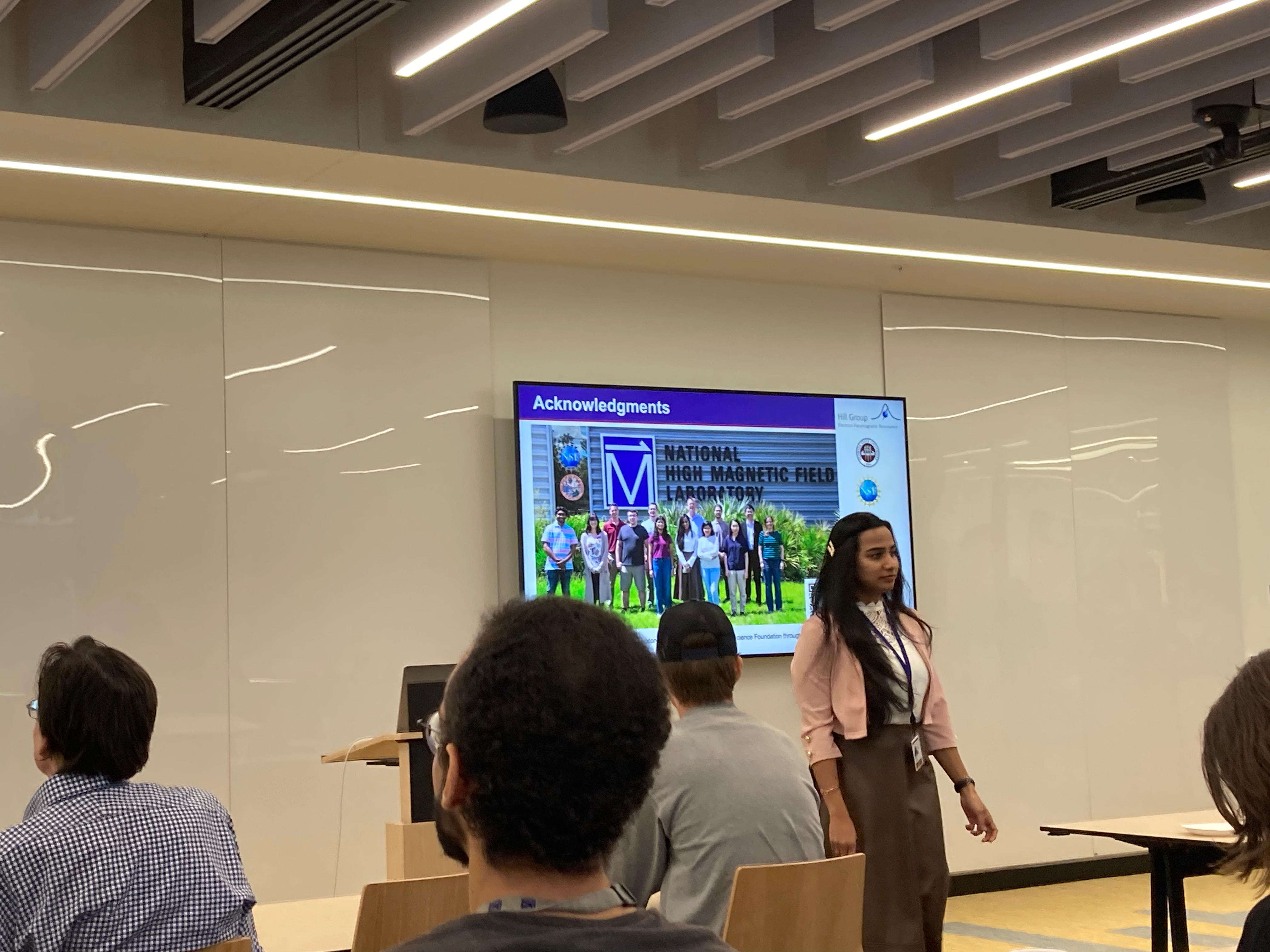 Postdoctoral researcher Dr. Kavipriya Thangavel delivered a talk titled “Superposition and Its Significance: The Linchpin of Our Quantum Research,” introducing the fundamental quantum behavior of qubits and showcasing the exciting frontiers of molecular spin qubit research pursued in the Hill Group. Her presentation highlighted ongoing breakthroughs, demonstrated how molecular platforms are shaping the future of quantum technologies, and inspired budding scientists to explore the rapidly expanding world of molecule-based quantum systems. Her talk was also showcased in the FSU University News. READ MORE