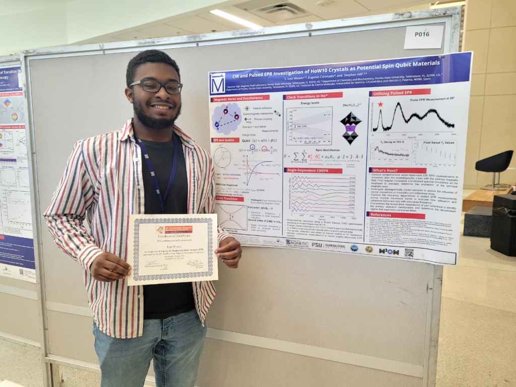 Graduate student Ivan Weaver presented a poster on “CW and Pulsed EPR Investigation of HoW10 Crystals as Potential Spin Qubit Materials” and received the Runner-Up award in the poster presentation category. Great work, congratulations, Ivan! Keep going!